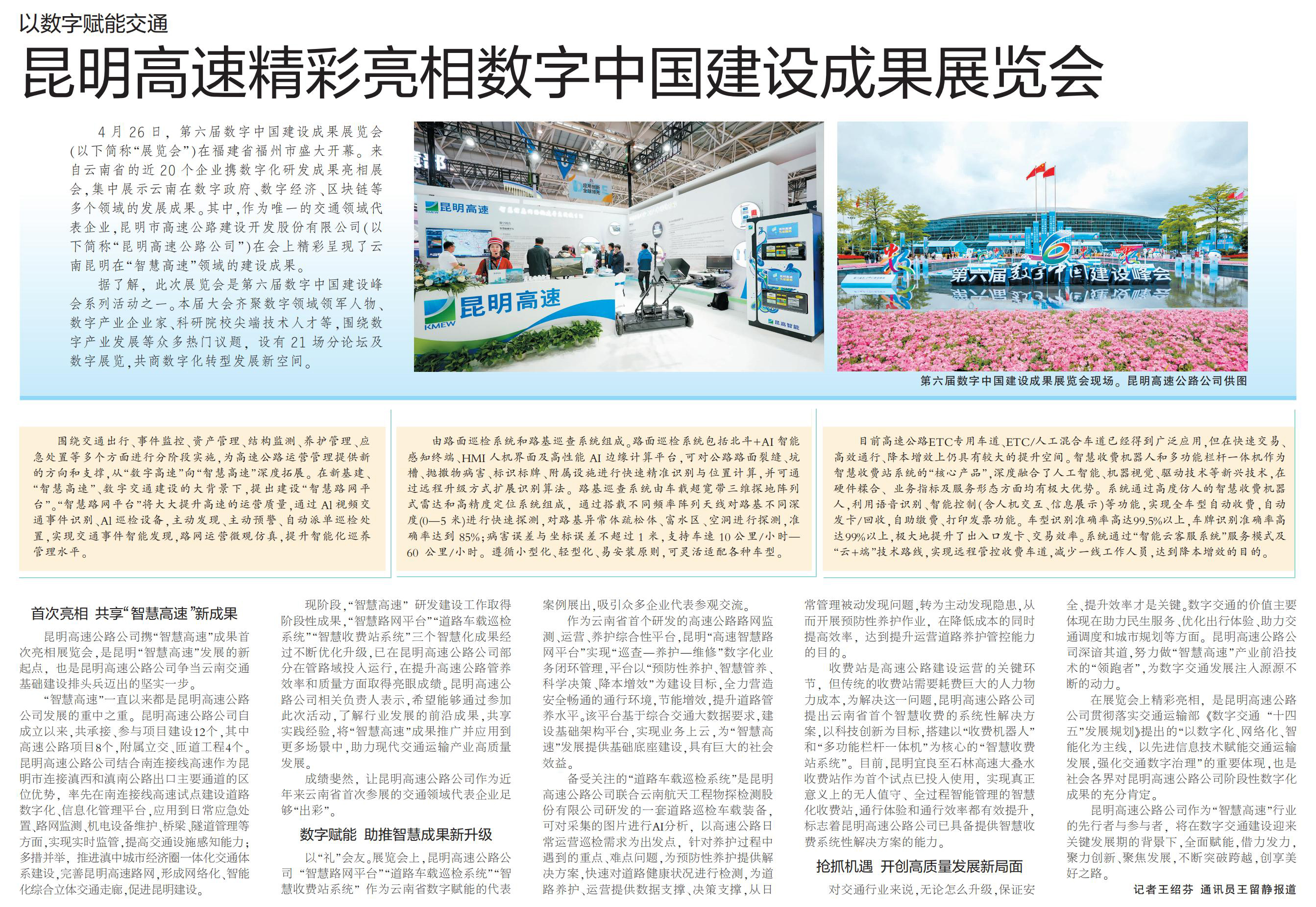 昆明日?qǐng)?bào):以數(shù)字賦能交通 昆明高速精彩亮相數(shù)字中國(guó)建設(shè)成果展覽會(huì)