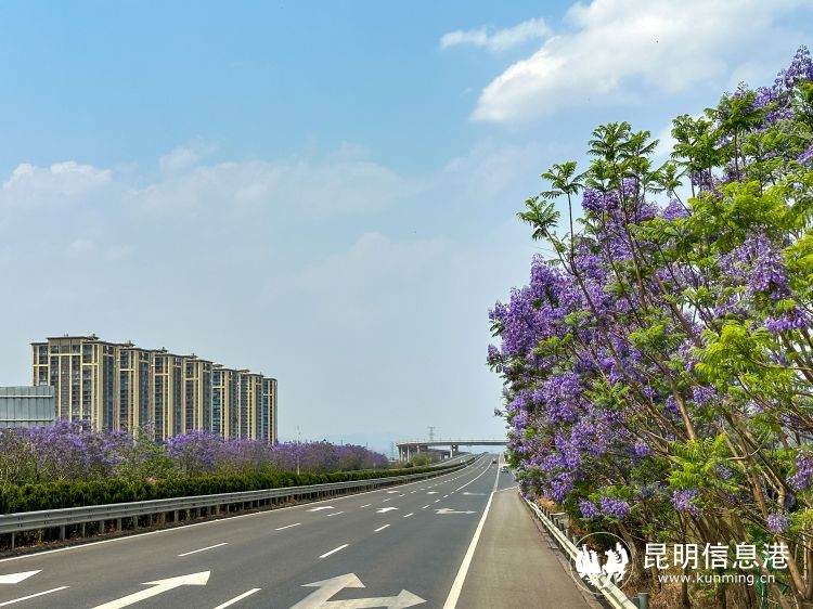 昆明信息港:藍(lán)花楹盛放扮靚高速 昆明繞城高速東南段成綠美春城新典范